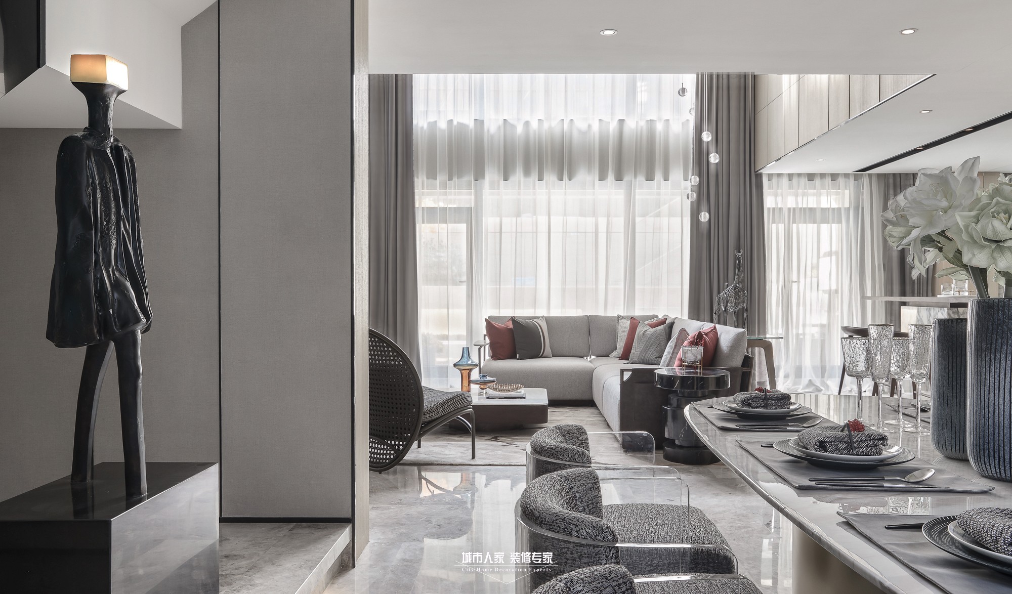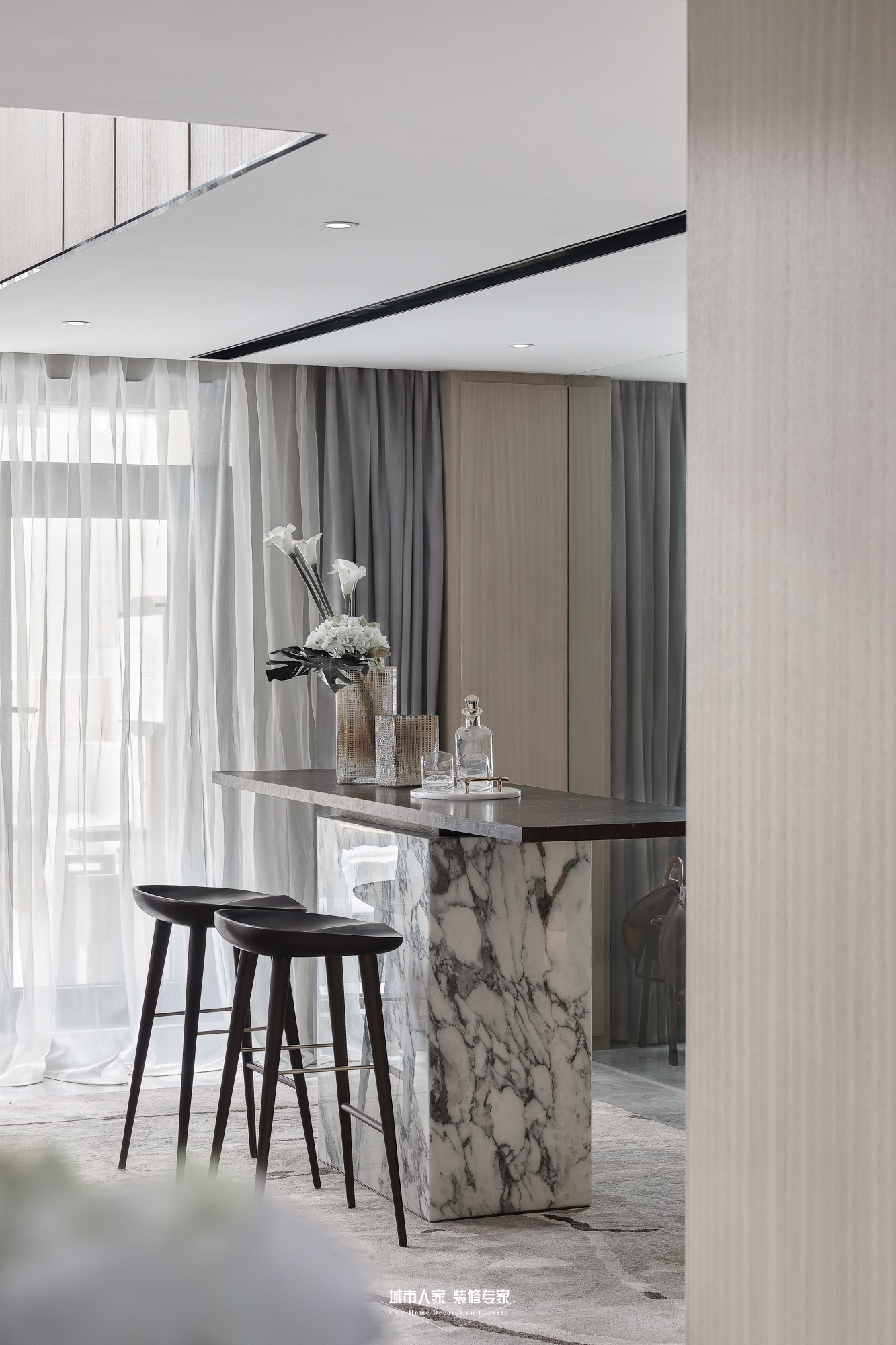 設(shè)計團隊結(jié)合空間自身特征,秉持大道至簡的哲學(xué),寧神靜氣沉密神采,重現(xiàn)詮釋當(dāng)代簡約風(fēng)格。倡導(dǎo)純粹、自然、極簡,堅持給空間留白,給藝術(shù)留空間。