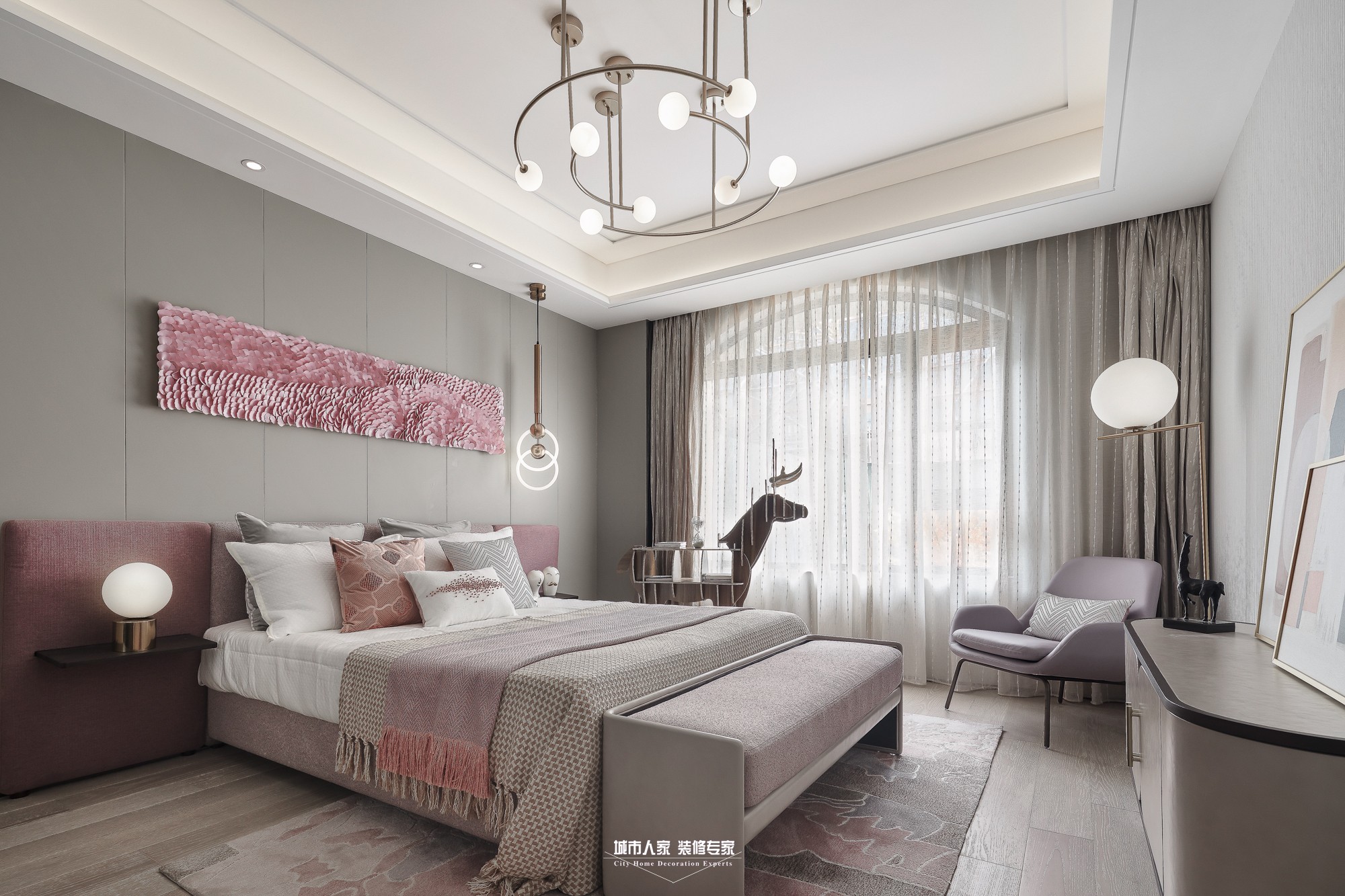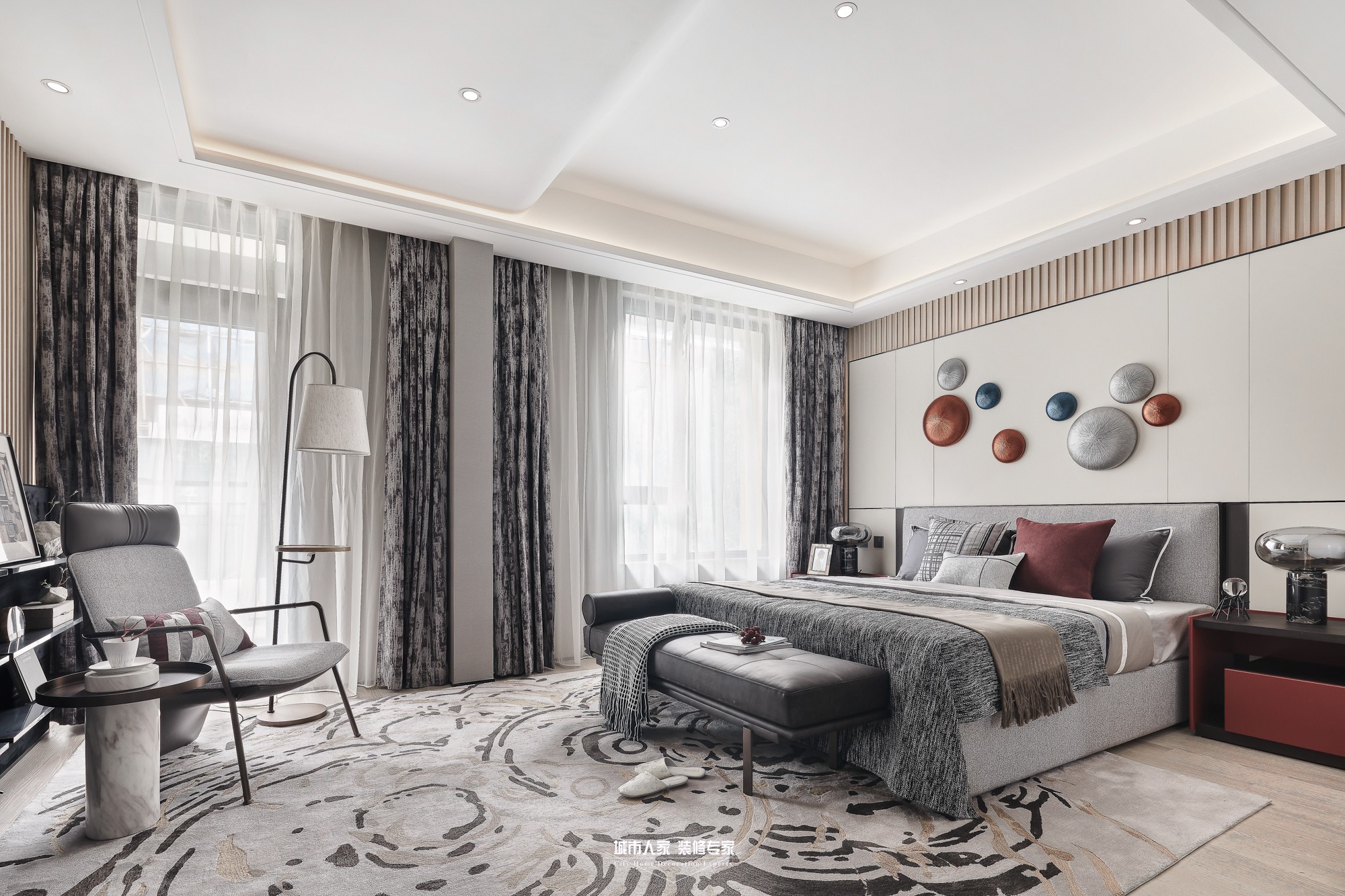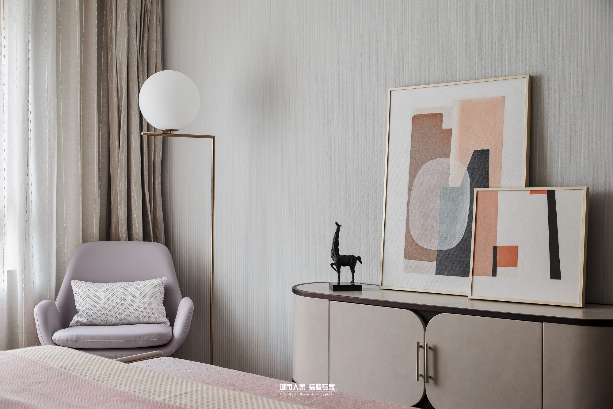現(xiàn)今看來,現(xiàn)代風(fēng)格的首要特色應(yīng)該是“簡”字。與“減”不同,簡,其實是某種意義上的加法,把分散的元素收集歸納合并同類項,再以新的節(jié)奏重寫韻律。從墻面造型可以看到這種化簡的智慧,少里可以看到豐富。
